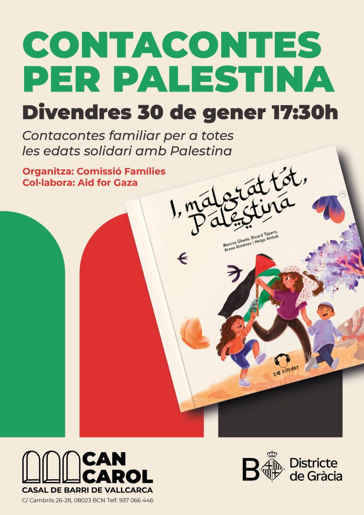 Contacontes familiar per a totes les edats solidari amb Palestina. Una estona per escoltar i compartir contes i històries.